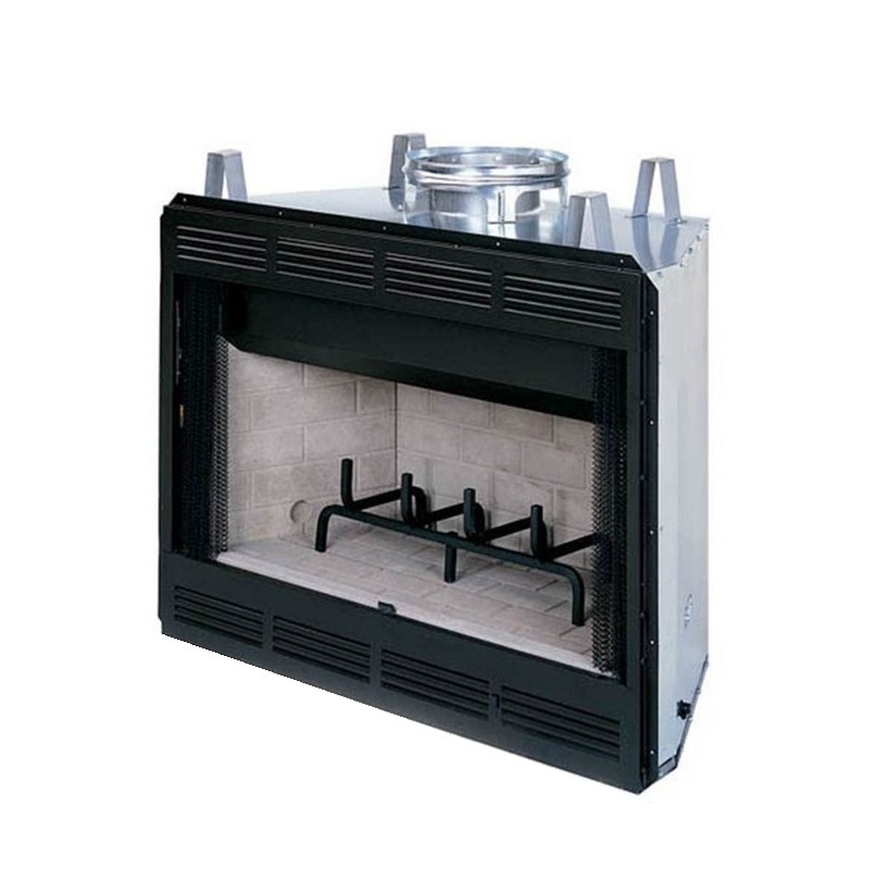 Hay cosas que nunca pasan de moda, como la belleza y la apariencia del viejo mundo en una chimenea de leña Temco. La cobertura de la cámara en ladrillos refractarios gris y una parrilla de diseño, harán de esta chimenea la pieza central de su hogar. Su frente abierto de 91cm de ancho x 53 cm. de alto, con malla metálica incluida, ofrece casi medio metro cuadrado de visionado; amigos y familia podrán disfrutar de un encantador fuego desde casi cualquier lugar de la habitación. El revestimiento completo de ladrillo refractario y su patrón de ladrillo, además de proporcionar un estilo clásico a su hogar, lo hace fácil de limpiar ; el sistema de Gestión de Ceniza presenta una bandeja extraible que impide que el hollín y cenizas se derrame fuera de la chimenea a la vez que ayuda y facilita la limpieza. Presenta unas pestañas a cada lado para agregar fácilmente un conjunto de gas si se desea en un futuro. \n \n \n \n \n \n NOTA: Este modelo admite un máximo 2 kilos de madera en combustión.
