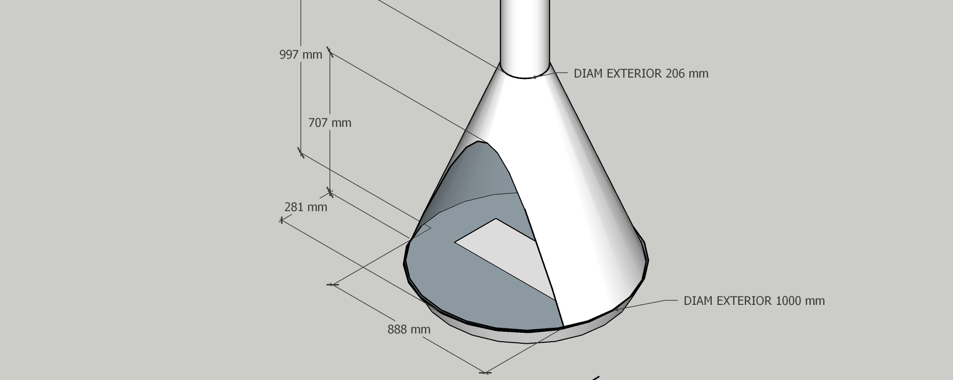 Chimenea Colgante Modelo Zúrich – Geometría Escultórica con Fuego como Protagonista La chimenea Zúrich es una chimenea colgante de presencia contundente y líneas limpias: un cuerpo cónico de Ø100 cm que desciende desde...